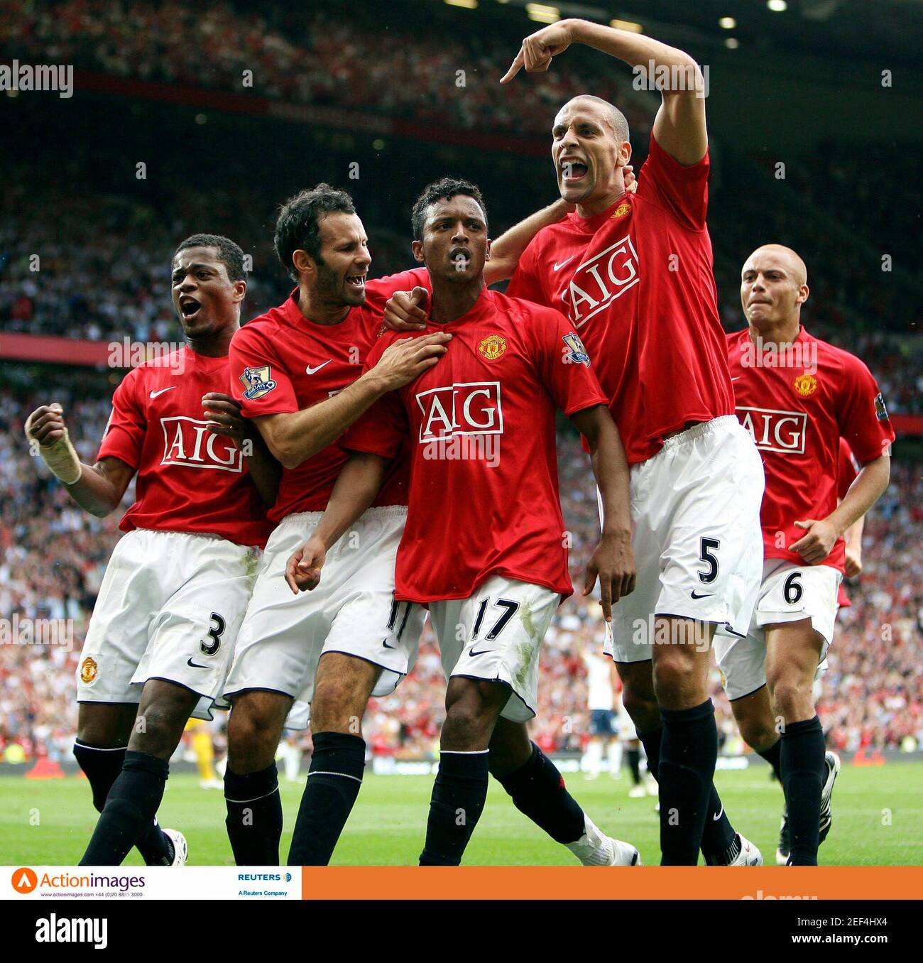 Fussball Manchester United Gegen Tottenham Hotspur Fa Barclays Premier League Old Trafford 26 8 07 Manchester United S Luis Nani Feiert Mit Patrice Evra L Ryan Riggs Rio Ferdinand Und Wes Brown